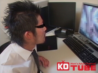 イケメン髭リーマンがオフィスに戻るとパソコン画面につけっ放しのAVが…欲情したリーマンがビデオ見ながらオナニー発射!!